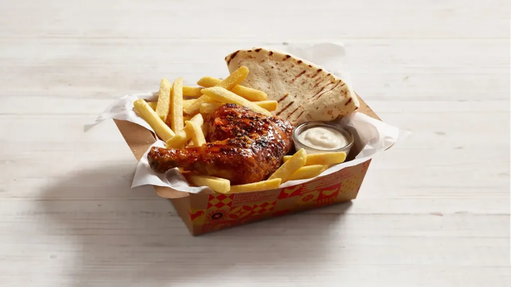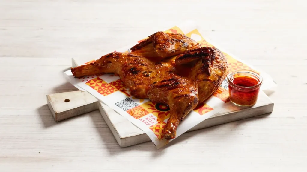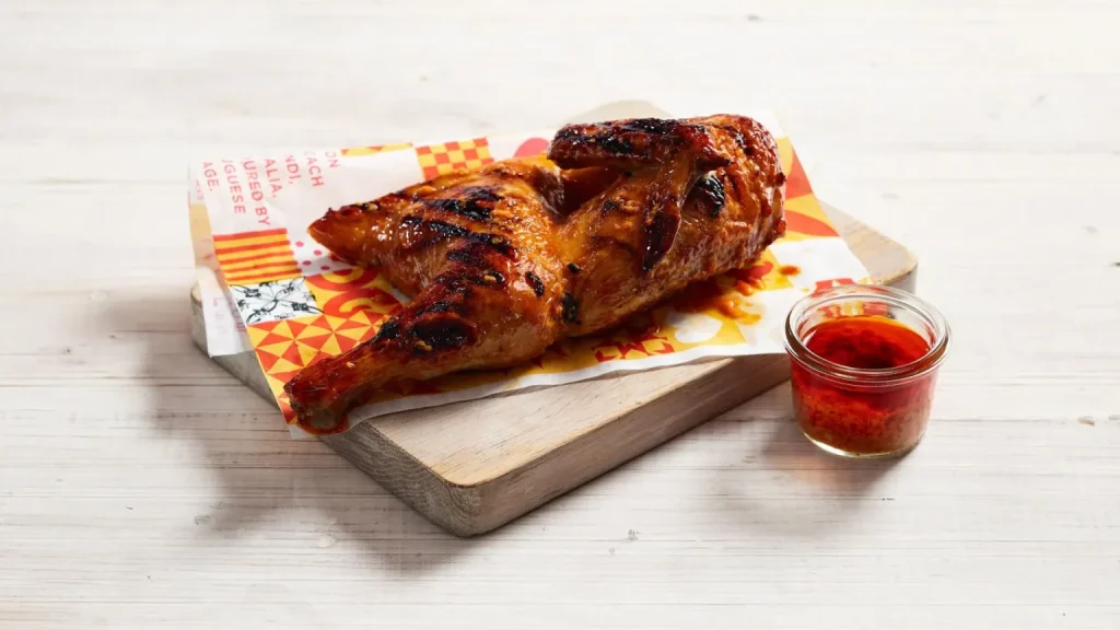 Our chicken is flame-grilled, not fried, and marinated for 24 hours in our signature Portuguese-style spices. It’s cooked fresh to order for maximum flavour and juiciness.