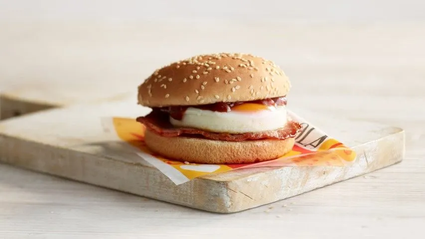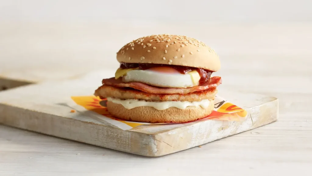 Looking for something classic? The Bacon & Egg Burger is simple but super tasty. It has crispy bacon and a fried egg inside a soft burger bun. The salty crunch of the bacon goes perfectly with the creamy egg.